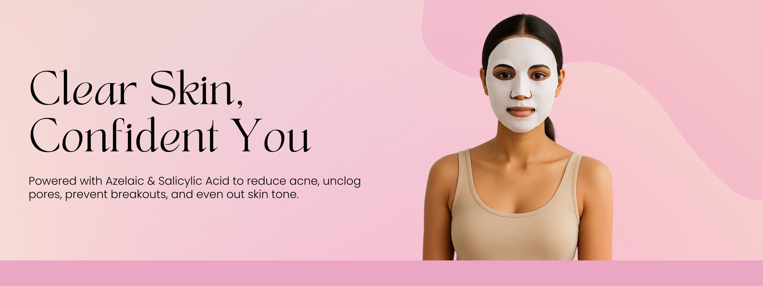 Formulated with a precise 0.5% blend of Azelaic and Salicylic acids, this targeted sheet mask works to reduce active breakouts while calming and brightening your skin. It combats acne-causing bacteria, decongests pores, and curbs excess oil production—all while helping fade post-acne marks and dark spots. Willow bark extract soothes and supports skin renewal for a clearer, more radiant texture.
